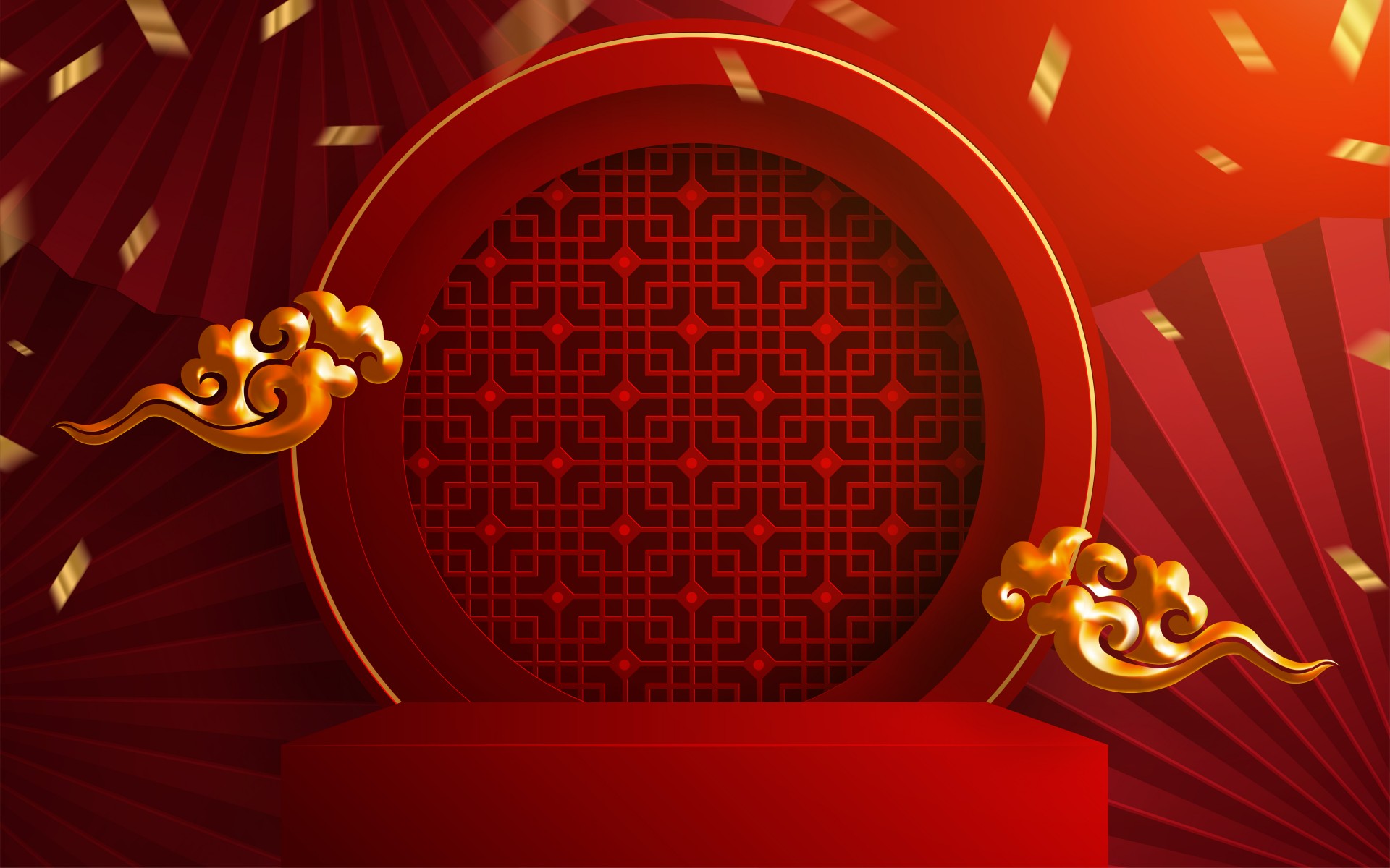 3d Podium round, square box stage podium and paper art Chinese new year,Chinese Festivals, Mid Autumn Festival, red paper cut, fan, flower and asian elements with craft style on background.